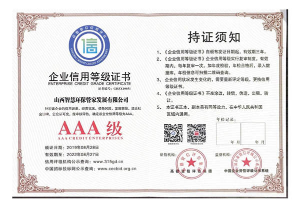 企業(yè)信用等級證書AAA級